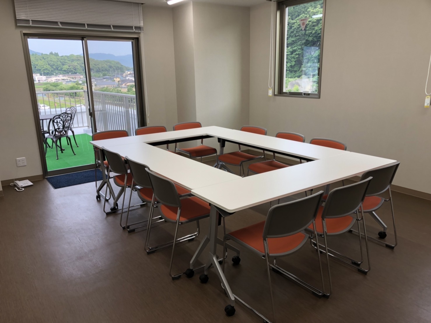 オープンテラス付の会議室は、各種セミナーやワークショップやヨガレッスンなどのご利用にもお勧めです。
